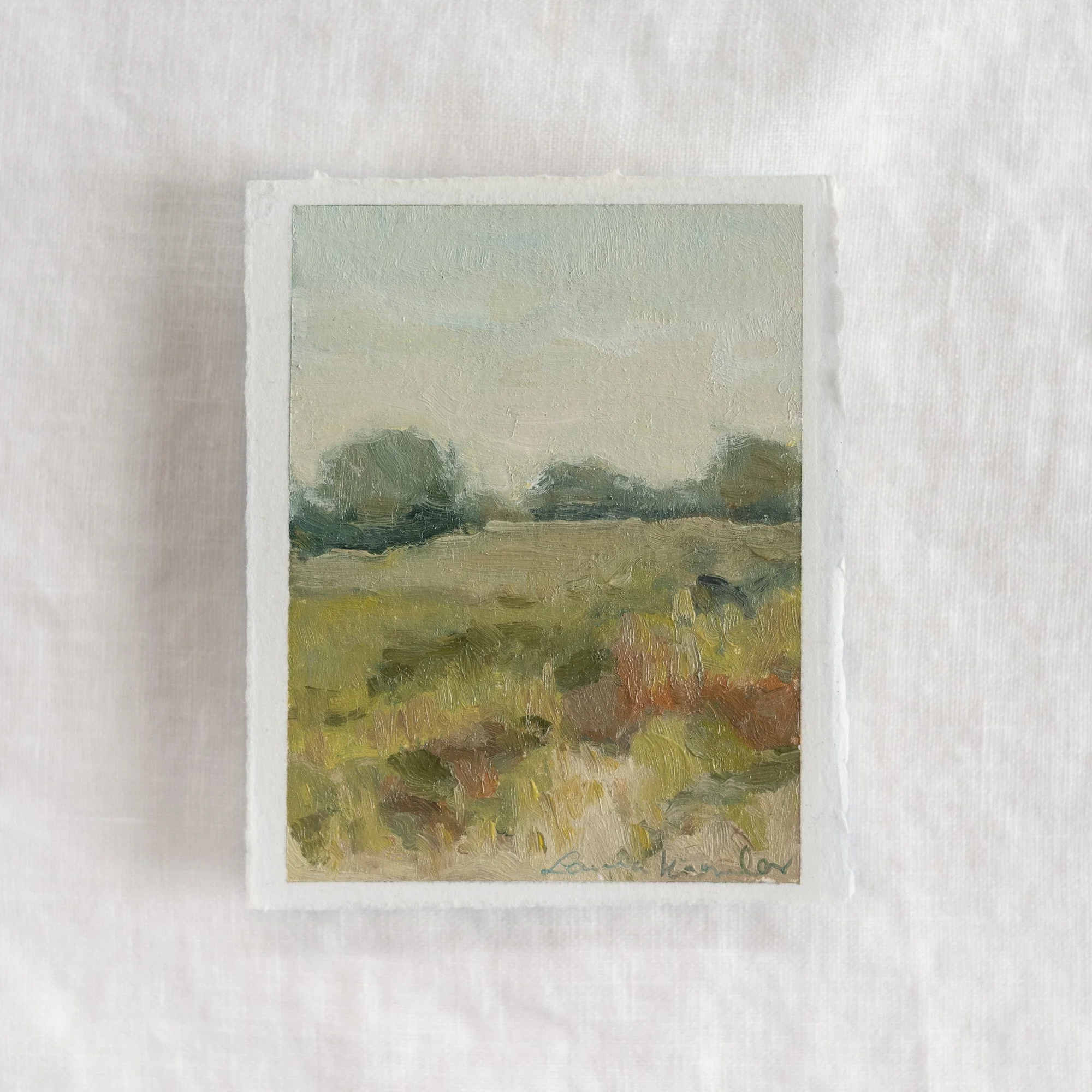 I can settle in and work toward the impression: the shift in colour from morning to afternoon, where the sky sits against the treeline, the way distance softens and fades my view.